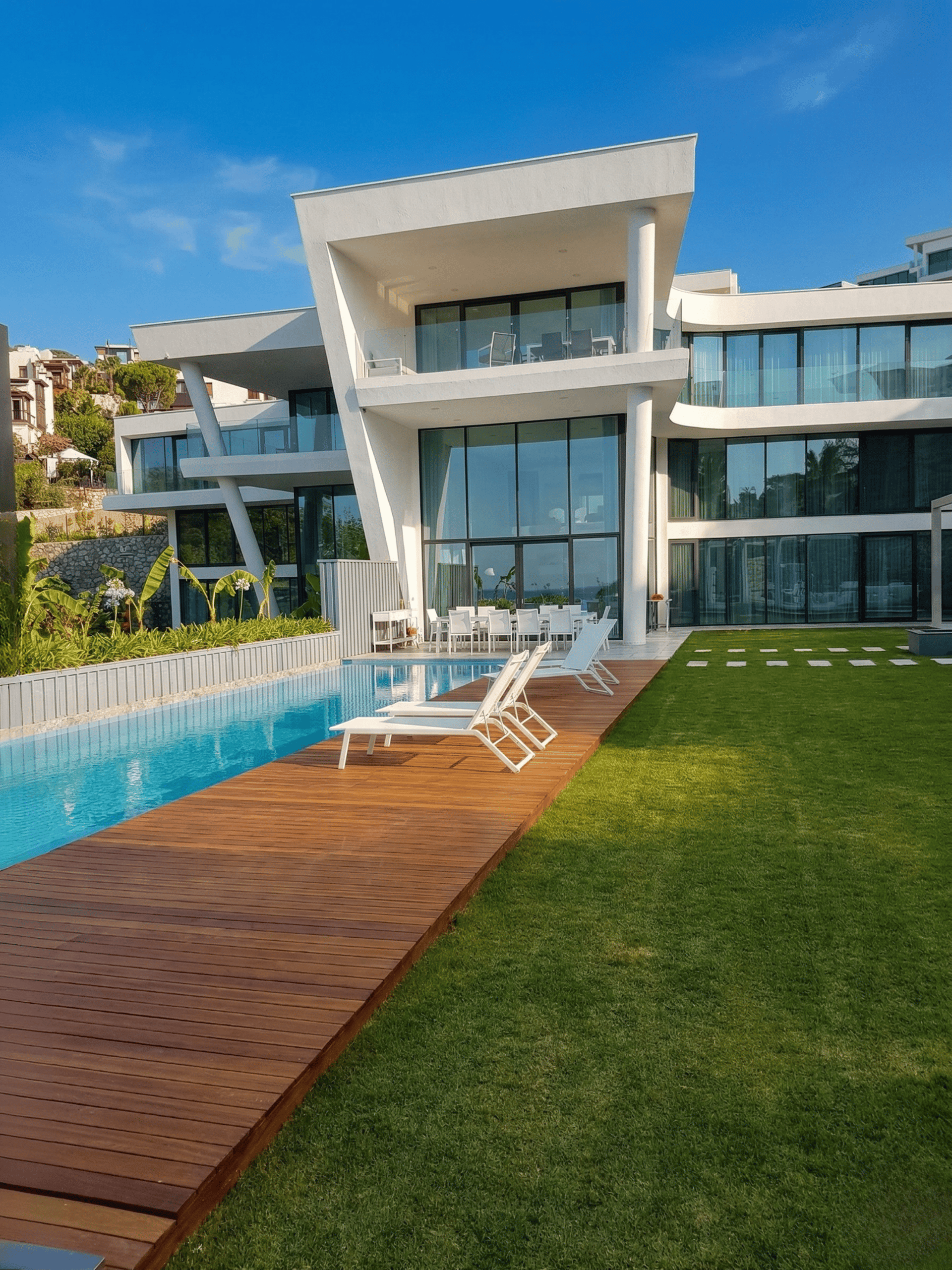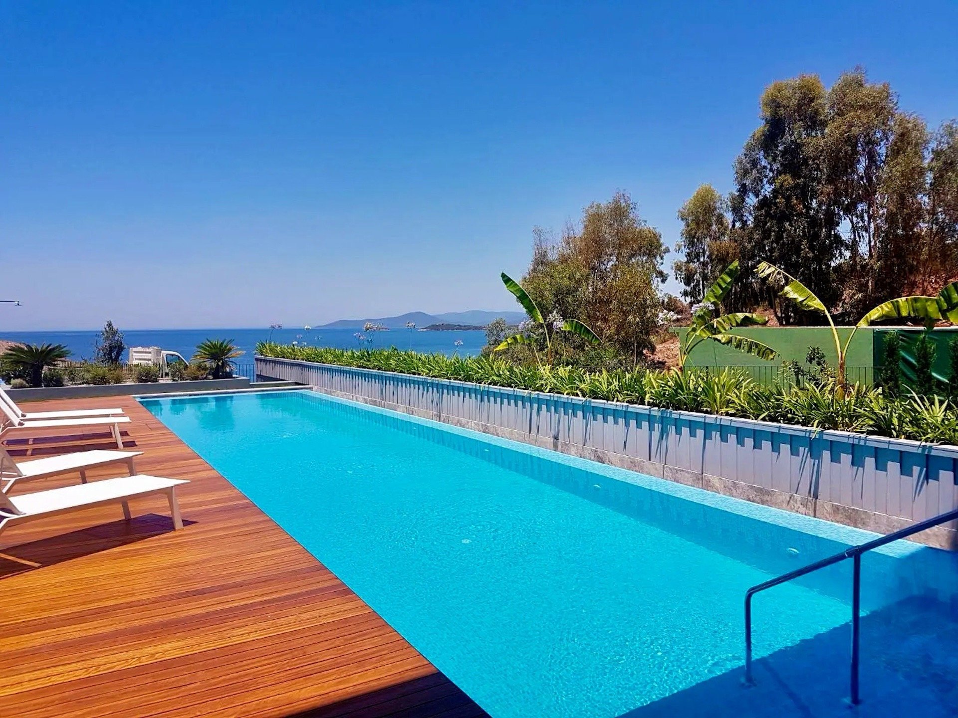 Milas Boğaziçi’nde gerçekleştirilen bu projede, modern peyzaj ve ahşap tasarımlar öne çıkmaktadır. Yenilenen havuz ve dekorasyon detaylarıyla estetik ve fonksiyonel bir yaşam alanı oluşturulmuştur. Doğayla uyumlu, konforlu ve şık bir dış mekân deneyimi sunar.