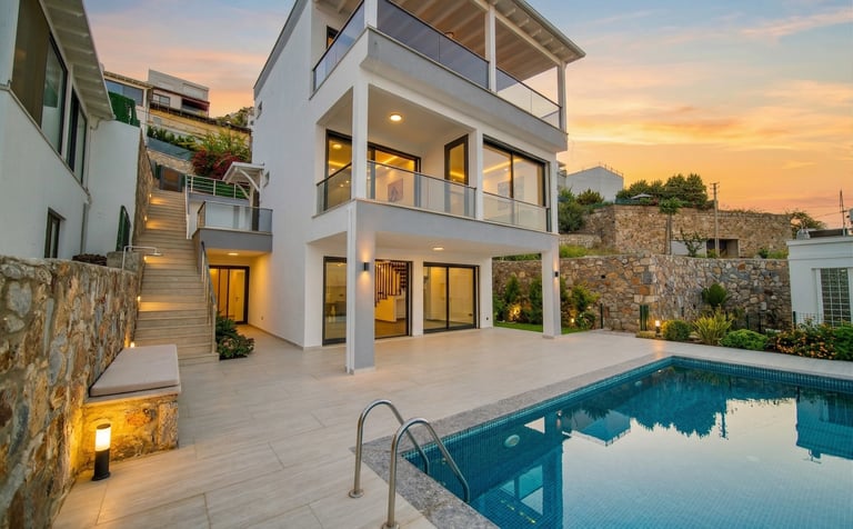 Bodrum Kadıkalesi’nde konumlanan bu sıfır villa, modern mimarisi, fonksiyonel yaşam alanları ve panoramik deniz manzarasıyla öne çıkmaktadır. Toplam 3 katlı olarak tasarlanan yapı, hem konforlu hem de uzun ömürlü bir yaşam alanı sunmak amacıyla inşa edilmiştir.